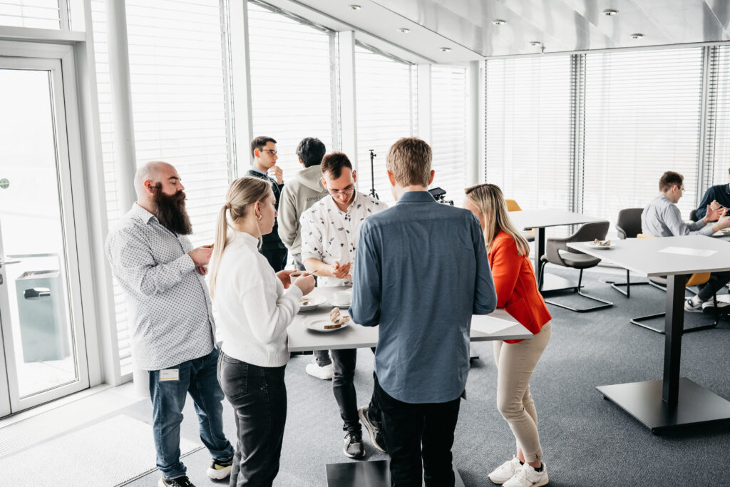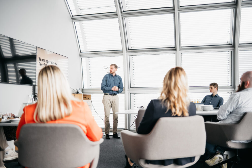 Theodor Dorotsky, Deutschlandstipendiat seit 2023 und derzeit Werkstudent IT bei der VNG AG, hat die VNG beim letzten Welcome Day kennengelernt. Diesmal berichtete Theodor von seinen eigenen Erfahrungen als Young Professional und weckte damit das Interesse der Studierenden an VNG als möglichem Arbeitgeber oder Partner für Abschlussarbeiten.